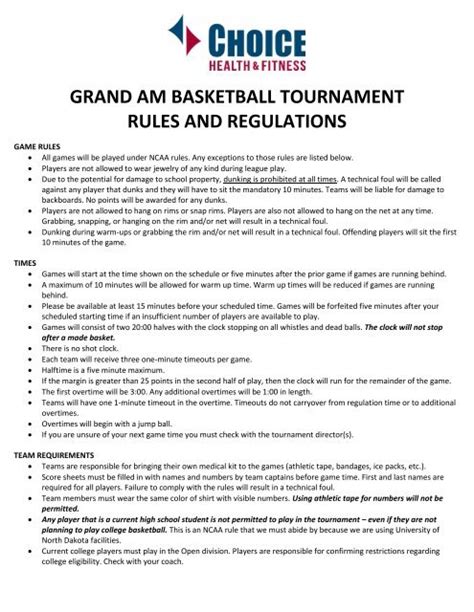 Basketball Tournament Rules. The clock will not stop if a team is ahead. The first 12 men’s teams and 12 women’s teams who pay their entry fee will be accepted.