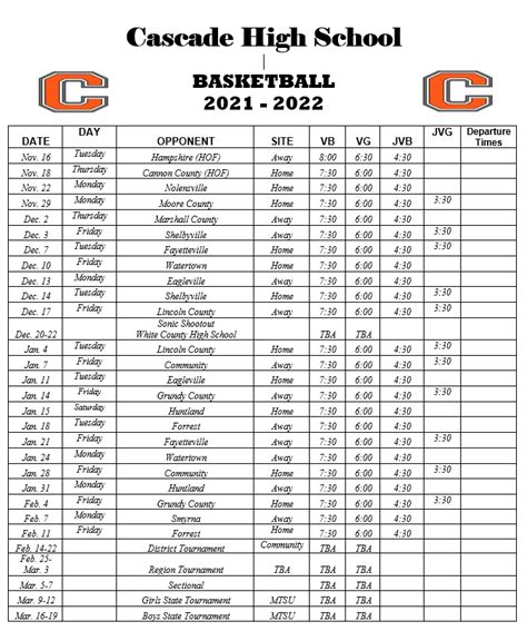 Cascade Basketball Schedule. Schedules include start time, directions and scores for the cascade We thought of a calendar pun.